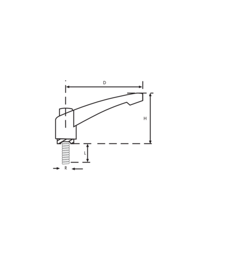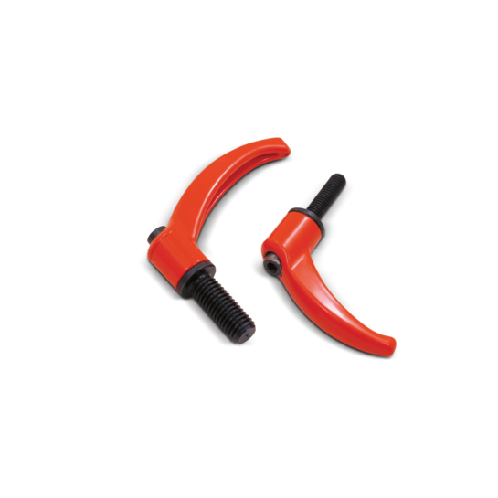 rękojeść zaciskowa metalowa malowana na pomarańczowo ze sworzniem gwintowanym.